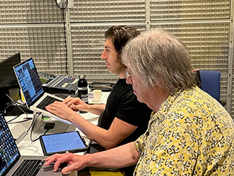 They have been back to IRCAM in Paris once again to finish the electronic parts - the Max patch - with Carlo Laurenzi for “Tu Mewn Foel y Mwnt” (Inside Foel y Mwnt), one of his series of works about places in Wales which have had a big impact on him - for viola and electronics. The work is now almost finished - there are just a few adjustments to the mix still to do.