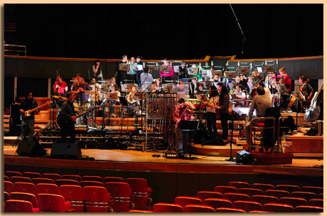 Steve and Andrew spent some time going through the songs which didn't have orchestra or choir on them originally, and decided to beef most of them up with orchestra. It took some time to re-work the original scores (which, luckily, Andrew still had) for the smaller line-up which they were using for the concert. They also needed to work out concert endings for the tracks which faded out on the originals... The concert, which was sold out months before the day, was conducted by Andrew, who described it as a joy: a wonderfully receptive audience and the orchestra - and the band - rose to the occasion, as did Steve, who was on great form. They are hoping to repeat the experience this year – Andrew is really looking forward to it. |